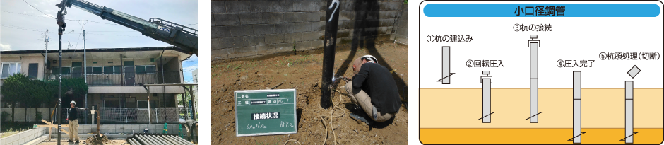5.信頼性が高い・・・・・・溶接や切断により、杭長の変化に容易に対応でき、確実に支持層まで圧入できます。